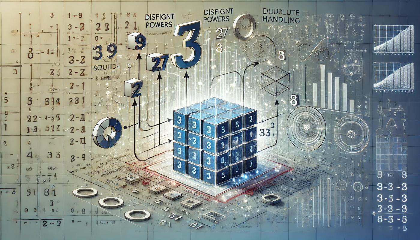 For example, if we consider the number 3, the distinct powers under 100 are 3, 9, 27, 81. Since 3 can go up to the 4th power under 100, there are 100 distinct n-th powers when considering all cases from \(3^1\) to \(3^{100}\). However, the powers of 9 (\(9^1\) to \(9^{100}\)) exclude even powers from \(3^2\) to \(3^{100}\). This method lets us calculate all distinct n-th powers related to the base number 3, including those associated with 9, 27, and 81.
